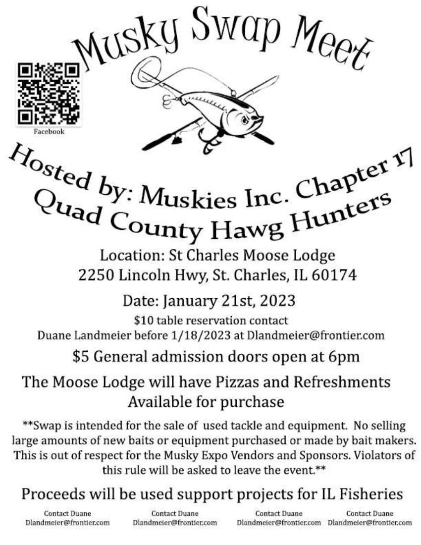 | Jump to page : 1 Now viewing page 1 [30 messages per page] More Muskie Fishing -> Muskie Club Information and Announcements -> Musky Swap Meet |