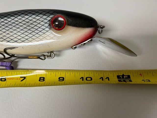 Looking for some lure ID help. I believe this to be an old Dunwright Depth Charge Lure. The lure is wood construction, 11" long without lip, 13" with lip. Can anyone confirm or provide some info, history, and if indeed this is a Duwriight?