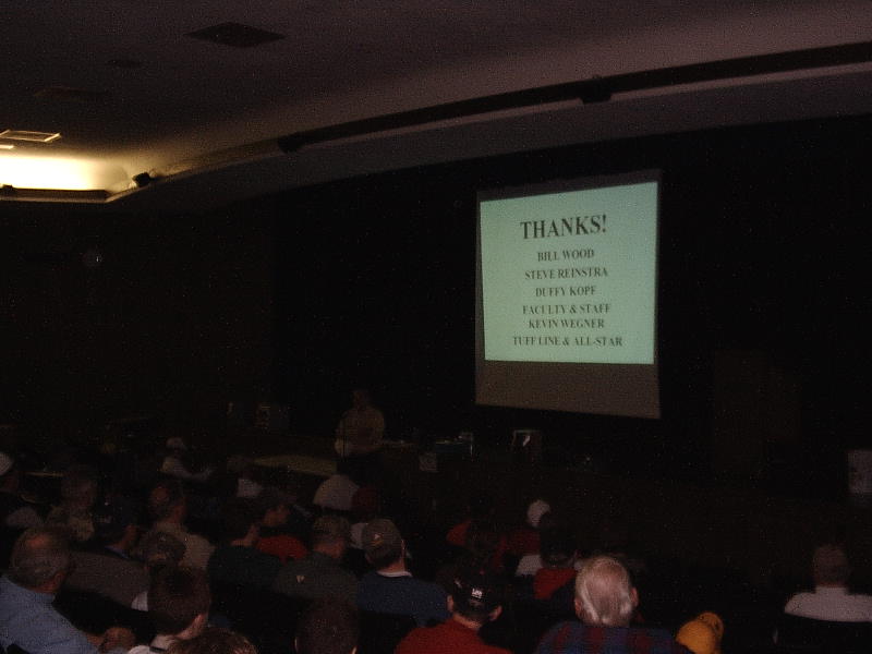 Posts: 104 Location: reedsburg wi | CCMI did a very fine job agan this year. Each year it just gets better and better. If you can get to the school next year you will not be disapointed. Steve's under water talk alone was worth the trip. thank's steve for driving thru a foot of snow to get down to talk. Every class had a lot to offer, as wood said it is to bad you cant take all of the classes in. After watching Steve run the violentstrike buzz bait in the pool you have to have some. very fine bait. My son and I are looking to make some baits together after taking the crank bait class. Apple pie with icecream to top off a great meal it dont get much better. | ||