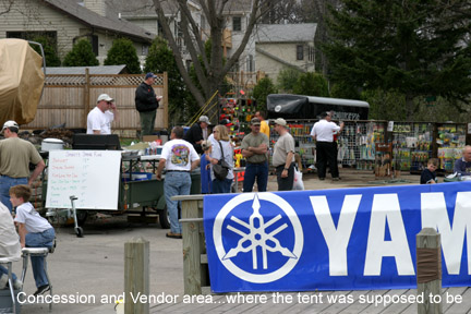 Posts: 169 Location: Pewaukee, WI | Smokey's Spring Fling Update... 34. Skimmer Bucktails 35. Lakewood Tackle Boxs ***Event Parking*** There will be a shuttle bus running all day from Smokey's to Nettesheim Park (1/4 up hwy. SS) Follow the signs to the park and catch the free shuttle to the event. The raffle list is very impressive including a Frabil Net, Tackle box, Lure kit, Rods Reels, so far over 30 baits. The Smokey's shirts are in. Long and short sleeve in 2 colors will be available. The Tents are up, 2 days to go! Thanks again to Yamaha Outboards the event main sponsor!. Associate sponsors: Bucher Tackle, Mepps, Frabil, Musky Magic Tackle, Roberts Outdoors See you on Sunday!! | ||