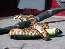 Posts: 20281 Location: oswego, il | You two are a couple of girls. I would of had ahold of that thing as soon as I seen it. I used to catch snakes when I was a little kid and put them down my shirt. I have been bitten by snakes too, no big deal. Shoot, when I was in college, I used to fish the rip rap on lakes around SIU and see water moccasins all the time. I even had one swim up to my boat once. Snakes are cool. Now if I just had an annoying british accent, I could have me a reptile show. Edited by ToddM 5/7/2004 8:32 PM | ||