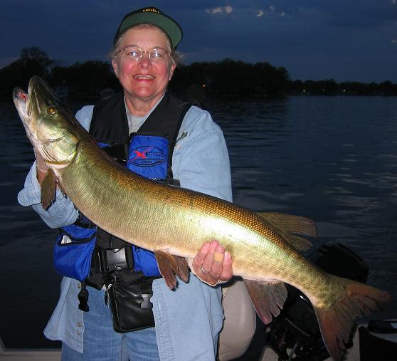 Later that night we were out and all I heard was UGH (big grunt), I looked at Pat and her rod was bent in half and she was doing battle with a nice Musky.