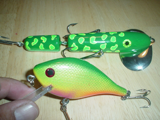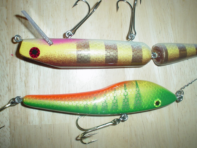 Posts: 1504 Location: Oregon | Hey great job on the baits! Here is a couple of mine. RM Attachments ---------------- grnbardropbelly.JPG (170KB - 221 downloads) perchshortyglide.jpg (58KB - 201 downloads) sevenswirl.JPG (37KB - 207 downloads) | ||