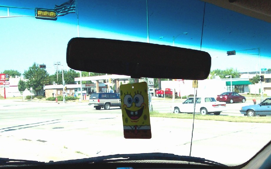 I have baits on the console, in the glove box, in the back seat, and in the back of my truck. None on the mirror though. I had one almost impale me when I hit a bump once, so now, I just have them everywere that I can't possible hook myself unless I roll the truck, and they come flying. In that case, I'm $creeeewd