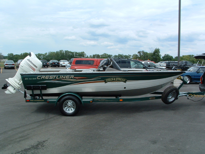 Posts: 146 Location: Wayzata, MN | I bought a 2004 Crestliner Canadian [18ft] in March. 60hp Yamaha 4 stroke tiller, 74lb MinnKota autopilot w/copilot, two Lorance x135 graphs, yadda, yadda... I love it. The Yammy's quiet and the boat handles small and big water... all welded hull, good warrenty. I went up a knotch on the trailer, to a 2100lb for all the trailering I do... Crestliner makes a good rig... congrat's~! | ||