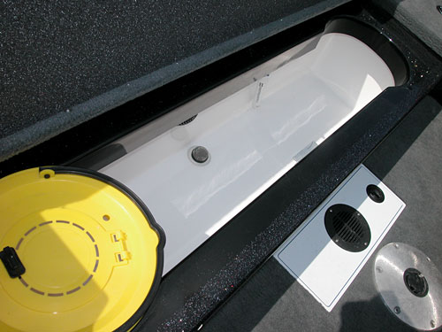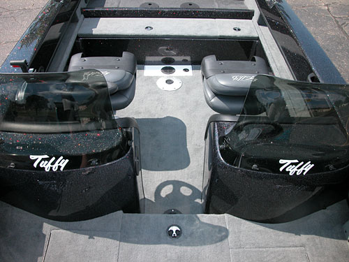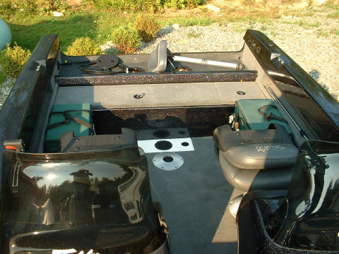 Posts: 32954 Location: Rhinelander, Wisconsin | The rear deck is already done placed solidly in front of the livewell, extending the platform the splashwell and livewell create. The front deck fishes two comfortably, and the rear deck one. This is a 17.5' boat, and probably will not fish 4 real comforatbly with everyone casting, but you certainly could. If you want to walk the side tanks all the way around the boat, the Esox Deep V model is specifically designed as a walk around side tank interior. This boat is along the lines of the brand X Multi-specie models claiming to be Muskie boats, but with some very nice added features. | ||