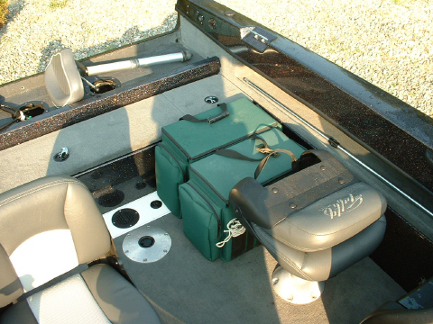 Posts: 1936 Location: Eau Claire, WI | Wife and I took a ride to Worrall's Hideout and got a look at the rig this morning. For a boat of this size I am very impressed with the new layout changes. The front deck is like a dancefloor and there is more than adequate storage in the bow compartments. The rod locker is too sweet... 8 footers in the top row and 7'6"ers in the middle no problem... There were ideas shared and incorporated from various current and former Tuffy owners and the factory did an excellent job with the engineering on this boat. Can't wait to see what the new 2060 will look like ?...Stay tuned Muskiefriends the unveiling is coming soon..:) I haven't seen the new deck extension yet but on the ride home I came up with a few prototype ideas in my little head "if" there is a need to input any revisions. From what Steve told me the deck extension is approximately as wide as one of the Lakewoods boxes pictured below. If you look at the picture with the boxes stacked 2-deep you should be able to see that there is enough room with the deck extension to still place a Lakewoods box behind each seat and still have enough floor room for the anglers to get out of their seats and be able to stand/step with adequate room to mount the front and/or rear deck. For reference the Lakewoods boxes pictured are the "Musky Medium" box 10.5"w x 14"h x 18.5"L. No doubt this will become the boat of choice for those who are looking for a very muskie friendly mulit-species combination boat in the 17-18 foot model range. Exceptional for 2 anglers, comfortable for 3, and workable for 4 if needed. 1760 hull offers great performance and is capable of safely handling big water while still being user friendly for those "less than desireable" launches on the smaller 2-300 acre lakes. A high quality glass boat just became an achievable dream for those who couldn't think they could afford it. Predatory perfomance on the prowl once again..:) Here are some pictures of my Lakewoods boxes in two different postions behind the seats. My Frabill Big Kahuna fit nicely along side the passenger seat and the inner gunnel. I'm confident Frabill's Big Game model would lay flat on the floor between the seat pedistals. Attachments ---------------- 1760 lakewoods each side.jpg (176KB - 165 downloads) 1760 lakewoods 2 deep.jpg (168KB - 163 downloads) | ||