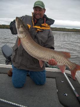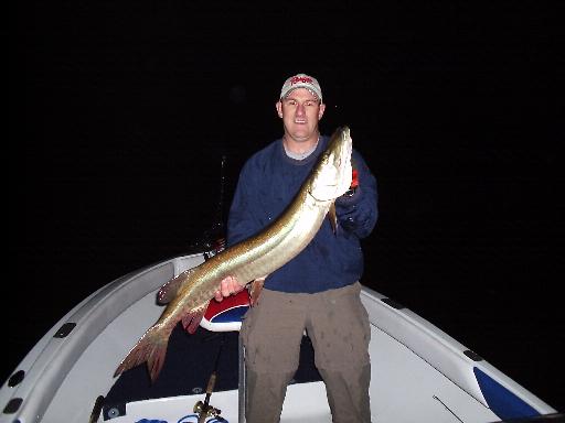 had a great weekend- shared the boat with 'musky-breath' corey meyer on thurs and friday. besides me screwing up 3 other topwater hits, i manged to hook and land a nice 40.5"er on a small pacemaker. spent saturday with wacko paul klein, and besides laughing my A55 off all day, i managed to pop a thick'n'beefy 44"er on a 10" jake at nite. almost looks like summer patterns are back in mid september.