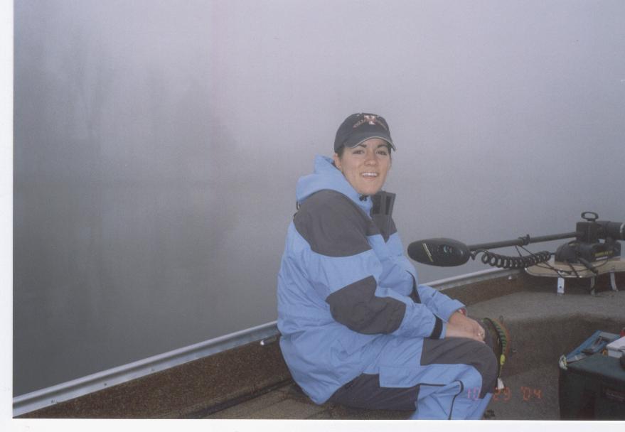 Location: north central wisconsin | Here are a couple shots of my wife from this past Friday while fishing the foggiest conditions I've ever seen. The foggy picture was taken at noon with shore no more than 20 yards away. We could actually cast out of our visibility that day. she got this fish on a Rylur topwater just after dark(boatside hit, so she was quite surprised). It was her biggest of the season, and maybe the heaviest she's ever gotten, so she is still adrenaline buzzed this very minute!