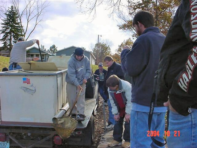 The 8th annual Catch & Release Petenwell Musky Challenge is closing the chapter for the 2004 tournament by stocking their muskies. The money raised was from the tournament back in May of this year. We raised $4,000.00 and are looking to stock 400 plus muskies (12-18 inches) on October 21st.