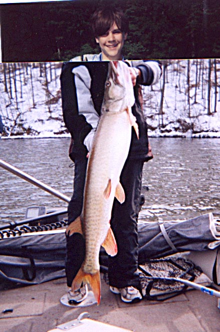 My boys and I were not able to fish today, the 31st but we were on Kinkaid the last couple of days. Ryan (I know nice picture,, ha, ha) caught a 47"er on 12-29 and Aaron caught a 43" on 12-30 at 1:30pm.