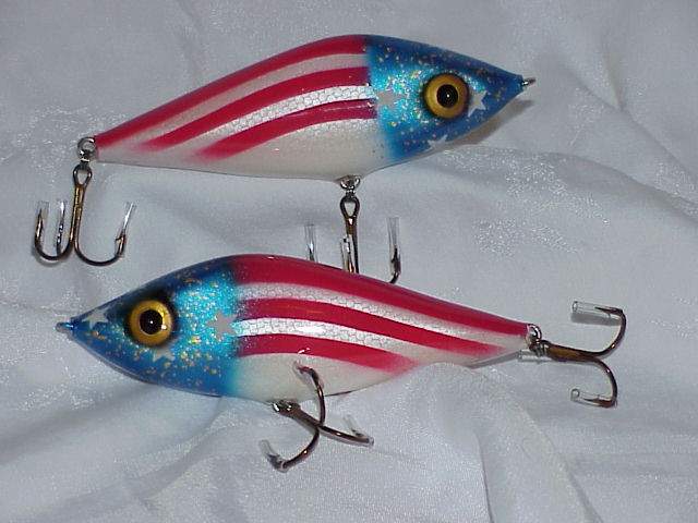 | Here are some pictures of a couple of custom baits from Trueglide. I asked Joe to make one up for my brother and I.
