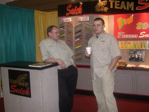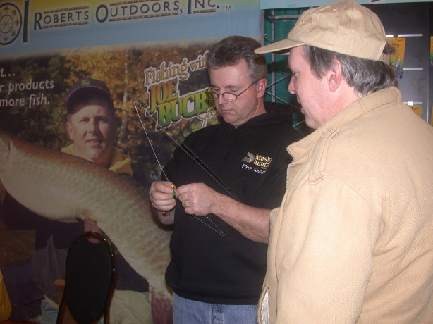 It's COLD out there, but the folks showed up in good numbers for day one. I spoke to dozens of friends, associates, and MuskieFIRST folks! Sue shops tomorrow, so there will be a list of items ad pictures from the great Sue's B Day muskie booth buy-out! ERC has a new bait, Slammer has some hot new colors, Bucher has the Big Joe. Weagles are nearly sold out. More to come later!