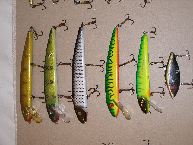 Posts: 814 | Lures are all used but in good working condition, would like to sell as a complete lot for a reasonable offer or trade. LOT 1 10'' Jake Golden Walleye 10'' Jake perch with gold holoform 10'' Jake black sucker with broken lip (needs to have broken lip removed and new installed) 9'' grandma firetiger 8'' slammer firetiger rattletrap LOT 2 7'' Cobb's countdown perch 8'' manta older color teal back/with silver scale over white body redhorse sucker countdown depthraider errnie perch cobbs glider LOUD color baby shallowraider gold prism bagley b-flat 8 LOT 3 Burt weighted golden walleye Burt weighted golden walleye Burt weighted tennesse shad Burt weighted silver tiger(one of first few colors) Burt weighted black w/gold dots Burt weighted orange tiger squirrely w/out tail needs to be replaced. LET'S HERE SOME REASONABLE OFFERS NEED TO MAKE ROOM FOR NEW LURES LOT 2 IS SOLD LOTS 1 AND 3 GOING TO EBAY ON SAT IF THEY AREN'T SOLD ANY REASONABLE OFFER TAKES THEM!!!!!!!! Edited by mskyhntr 2/21/2005 9:47 PM Attachments ---------------- for sale 001.jpg (100KB - 72 downloads) for sale 002.jpg (85KB - 74 downloads) for sale 003.jpg (106KB - 74 downloads) | ||