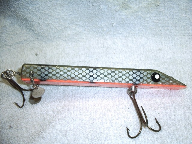 Can anyone help identify this lure? It is made like a Provoker, wire thru with a stainless post for a front hook hanger. Don't remember where I got it. I was going to try to sell it and don't know what to call it or what to ask for it.
