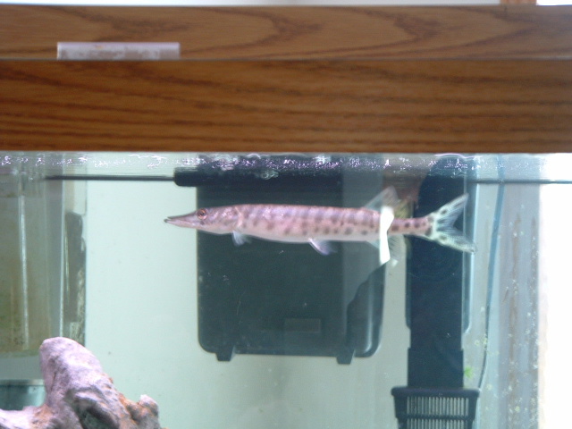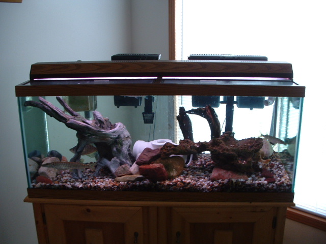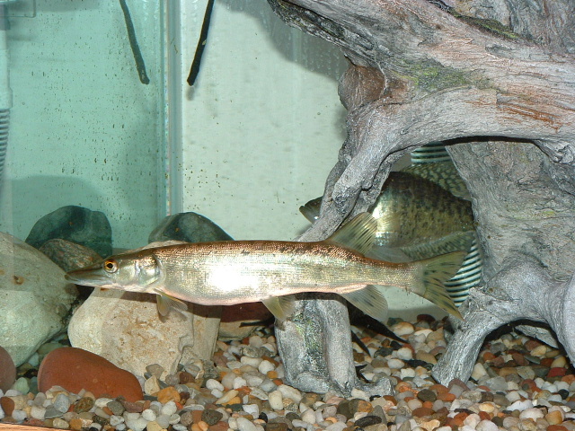 I just got rid of my Northern, he was over 15" long. Now I have a Walleye, Perch, Lm Bass, Bullhead, and 2 Crappies. Having the pet store get me a Muskie this spring.