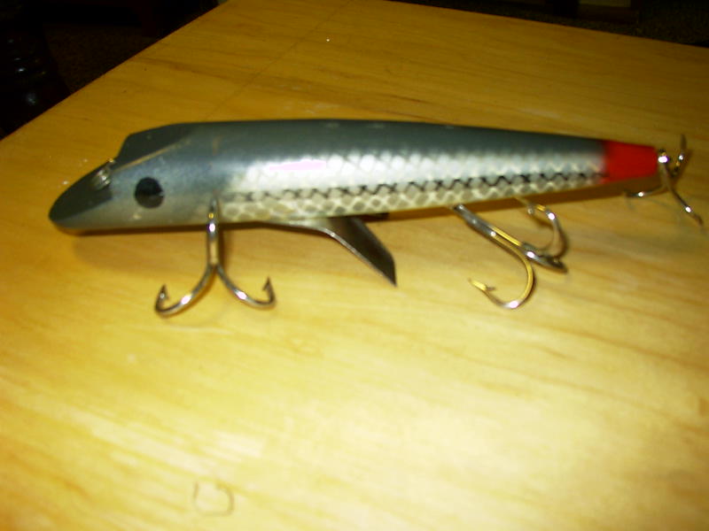 Posts: 605 Location: Marshfield, WI | I know a little bit more about the topwater bait. It was made by a guy in Central WI. I used to work with her daughter and she gave me one to try. She said he stopped making them because one of the parts wasn't being made anymore. Not sure which part. The bait does have a patent on it. Not sure what year(s) they were made. I did see one on ebay over a year ago, but they didn't include a name either. It did go for $32-35 bucks. Krishna | ||