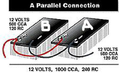 | What is the hook up routing for connecting two deep cycle trolling motor batteries to get twice the amount of 12 volt running time. Do I connect negative to negative and positive to positive, or what? PLEASE HELP!!!!!!!! . ALSO, can you charge the two batteries as one unit????