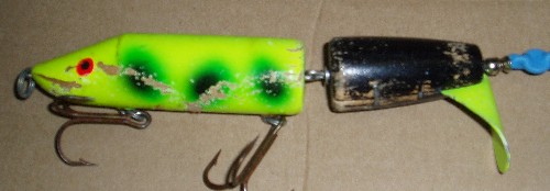 Posts: 2893 Location: Yahara River Chain | The guy that purchased the company lives near Madison, WI, not in West Virginia. Unless he sold it to that guy - which I have not heard. Bill, just looked at my Topkick and it has a metal bead behing the prop, not plastic. It does however habe the blade stapled into the tailsection. Gerard Edited by muskie! nut 3/26/2005 9:59 AM | ||