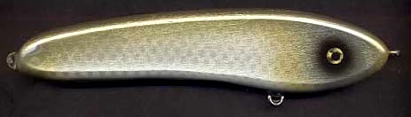 Posts: 4266 | 6 of one, a half dozen of the other. Same thing for Cisco patterns. Everydody thinks blue is part of the Cisco pattern though I have never seen a cisco with any blue in it. The are silver with a flash of gold near the top and sometimes some flash of green. Doesn't matter if they are shad or cisco, you could paint the lure white, pearl or metalic silver and white and add some scales that are just a shade darker and you'd have it. But what fun would that be? I believe that you have to add some color to it so there is some contrast for the fish to key in on as the lure moves. I've got lures that are all white, 90% white and all sorts of tints near the top. Bottom line, the fish doesn't see the top of the lure anyway. Painting it dark makes it hard for you to see when you bring it in, so I always add a patch of silver or gold to the top so I can see the top, not the fish. I don't know about the rest of the lure makers out there, but I have never laid a shad or a cisco on the table and tried to copy it. God made it, I'm not going to be able to copy it. Give me 100 colors and some lure bodies and let me amuse myself. Shad, cisco, perch ............ gotta give them a name, or nobody would know what to call it. Like walleye lures that are brown and yellow....ever see a yellow and brown walleye? Not me. Paint what you want, and call it what you want. Beav Attachments ---------------- Golden-Shiner.jpg (11KB - 152 downloads) | ||