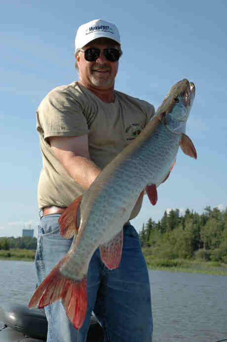 Posts: 1916 Location: Greenfield, WI | Hi Steve. I left from the Goon the day you arrived. I wish I was there yet. Among the great aspects of the water system was barely seeing anyone else on the lake during most of the week, other than beavers, loons. bald eagles, and moose! I got a 4# 20" smallmouth bass on a 8" Doghouse Bucktail! I also caught a personal best 48" 31# muskie. It was the big fish of the trip for a grand total of 45 minutes. My partner, Mike Kropp caught his personal best as well, a 53" 40#! Both fish had incredible girth. It takes a little time to get used to the minimal water clarity and the shallow nature of the fish, but what an incredible body of water! Not that you need it, but good luck! If you have the time, there is a great little restaurant in the booming metropolis of Wabigoon, that serves some mean omelettes for breakfast. | ||