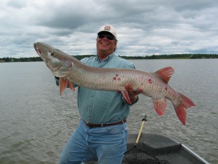 I was up at Wabigoon last week. My partner and I both caught personal bests. Mine was 48" 31#. It was the largest fish of the trip for all of 45 minutes. Mikes was 53" 40#! He is 6'5" and a big guy. If he was Tony Rizzo size the fish would appear much larger than this picture shows. Both were incredibly thick. What a trip!