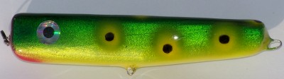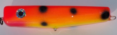 All you need is 1 Poes Giant Jackpot in Black/Orange bottom and don't waste more money on anymore. I'm all for multiple colors and sizes on bucktails and Cranks but you only need 1 surface walk the dog lure.