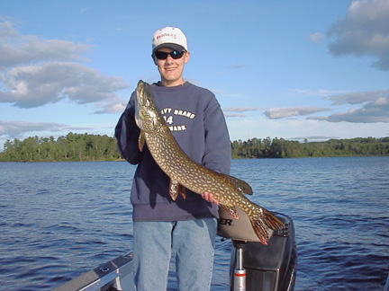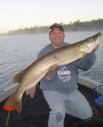 Posts: 1023 Location: Lafayette, IN | We go to a quaint little place called "Our Cabin". It handy since it's also where we sleep. I honestly don't have any suggestions for you, Todd. We never leave Muskego Point while we're there. I guess you could drive to Ely and eat at the Chocolate Moose. That's a neat place. We went there two years ago and I think the wives took the girls thare last year too. I'd also like to mention that we were fortunate to meet some new friends from Brainerd. The Young' are a very nice family and serious muskie anglers too. Jeff is the Brainerd MI chapter president. I really enjoyed visiting with him. We hope to see them again next year. Here is his big fish from the trip. She followed me up the day before he and his wife CPR'd her. I was real happy to see them connect. I think they love Vermilion now. Edited by stephendawg 8/4/2005 9:06 PM Attachments ---------------- Lunker_1's 48.25.jpg (93KB - 95 downloads) | ||
