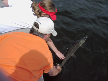 Posts: 1023 Location: Lafayette, IN | Well, I've been back in steamy Indiana for 4 days and am having MN separation anxiety. I saw my daughter Laura catch and release her personal best pike (on a buzz bait no less). A 33 incher. WOW, what excitement! I watched my son Jake catch and release his personal best pike as well. A fat 33.5 incher. I caught a perch... My wife and 2 kids got to see what a trophy musky looks like from the bow of the boat. We located a mid 50's hawg on thursday and I took them up to see the eagles and hopefully the big fish on friday. We got to see both. They about flipped out when they saw her. I think they understand me a little better now when I share my excitement about musky fishing. One evening while out by myself I saw one of the most beautiful sunsets I've ever seen. I dropped my hands to my side in awe of it. "God, you sure do great work!" was all I could say. I had a wonderful time of fishing fun and relaxation with my 3 best friends. Here are some pics. Hope you enjoy. Dawg Attachments ---------------- Jake's 33.5 pike.jpg (92KB - 94 downloads) Laura's 33in pike.jpg (92KB - 103 downloads) releasing Laura's pike.jpg (76KB - 96 downloads) Vermilion sunset.jpg (83KB - 90 downloads) Vermilion rainbow.jpg (70KB - 97 downloads) | ||