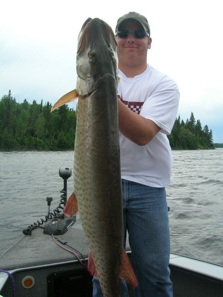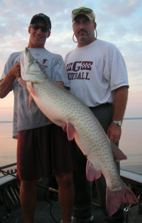 | Hey Muskie Firsters, I have been enjoying a lot of success taking some of Weston's buddies muskie fishing over the years. This year was no difference. We had a great time, putting 9 muskies in the boat over a week's time. They were from 35-51 inches, with 6 over 40". Topraider was king.....accounted for 7 of the 9. Exciting times for sure. Anyway, attached is the pic of the 51"er, caught by Weston's friend Jordan, and standing next to him is his proud father Jack. Donnie | |||