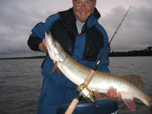 Posts: 2089 | A couple weeks ago, I had the opportunity to meet some of the engineers from Daiwa and take them out for a few hours on Mille Lacs.Basically, there is a new Team Daiwa Muskie series on the horizon and the CVZ-300 has undergone some changes.I threw the new Luna 300 on a 7'6" HVY Bucktail rod(prototype).The rod was really impressive and has a much heavier action than the old series.I ended up catching a 41, that struck at the end of a cast.The combo manhandled the fish.The reel has big paddles on the handle , which I really liked.Kudos to Daiwa for doing their homework on the new product and coming to Muskie Country to test it.I just received a couple Lunas in the mail today and will give a full report after some serious use.I haven't been impressed with ANY muskie reel since I picked up my 1st TE, but I think this one may be the ticket.More later. Steve Edited by Steve Jonesi 8/17/2005 8:50 PM Attachments ---------------- SJ Resized.JPG (89KB - 383 downloads) | ||