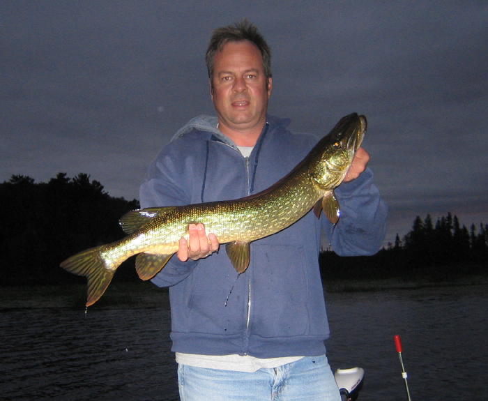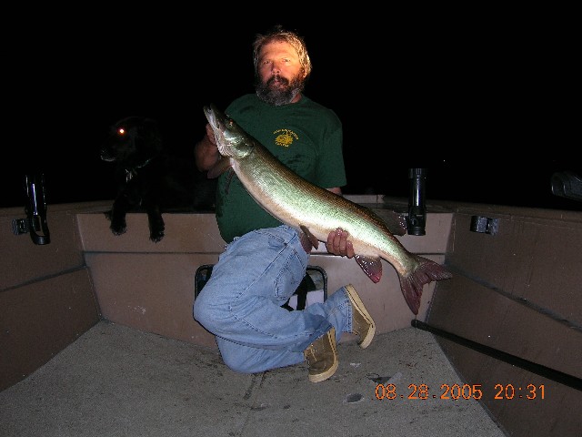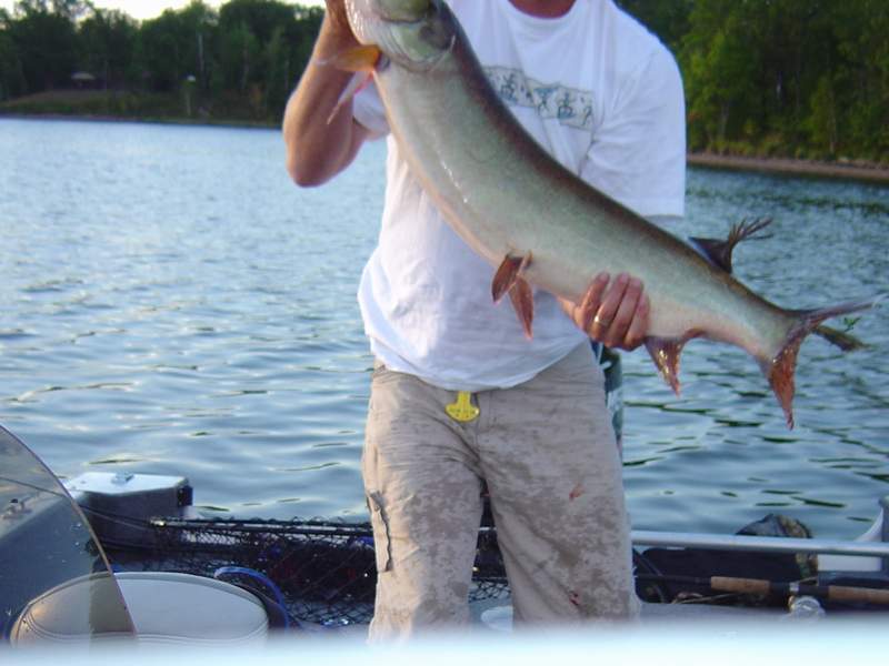 Was up on the Chip fishing in the PMTT, didn't catch any during tourny hours. Moved a lot of fish on Thursday and Friday, my partner caught a 34.5" Tiger on Friday. My 8 year old nephew, Cole Hefty, caught his first musky a 29". Sunday night I went out after the tourny and boated a very chunky flowage fish. 44" x 20.5" on a BS Willy globe. I had a much bigger fish follow 30 minutes later and I had one short hit the globe that I messed up and set when I should have just kept reeling, I was a little jacked up from the 44". I got on the radio to my brother in law, who did catch one during the tourny, and let him know the fish where going crazy. He called me back five minutes later and said Cole lost a 40" class fish on a pacemaker. The fish jumped totally out of the water three times and got off after the third jump. Cole was making so much noise when he was fighting the fish a group of people on shore heard him. He was so excited he didn't care that the fish got off, he was just so happy to have encountered that fish.