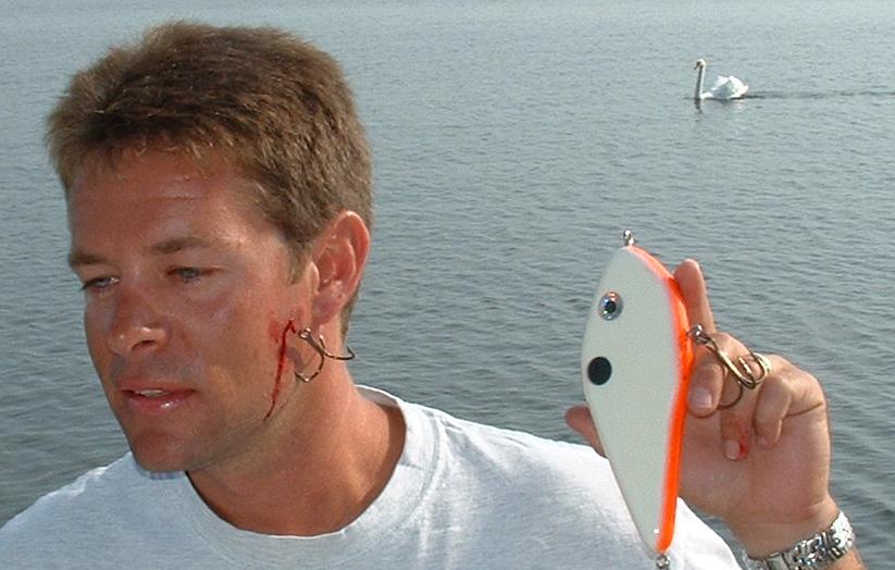Posts: 561 Location: Monee, Illinois | This ties in good to what I was going to post. I fished Thursday with Guide Chris Walker. We jumped in his boat and picked up a friend of ours Kent who lives on Webster. He was pre-fishing Webster for the up coming guide season. I need a day off so I said what the heck. Drove up that morning and we where there about 30 min and my bait got caught up in the weeds. So I pulled my pole with a sharp jerk downward to get the lure out. It would not come so I gave it a quick jerk up an WHAM the lure came flying out. I said look out Chris as we both turned away the lure hit Chris in the side of the head. And as you can see by the picture. We went to the hospital in Warsaw and 1 hour late we where back in on the water fishing. I felt bad but accidents happen. pga Attachments ---------------- thebigone.JPG (61KB - 216 downloads) | ||