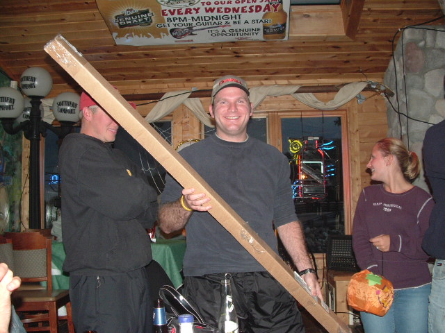 | Great time again and the weather was FANTASTIC compared to '04. In the words of Beavis & Butthead, "Hey Beavis, I think next year we're gonna score." "Hmm...Hmm...yeah...yeah. SCORE!" Seriously, thank you to all the sponsors for the great prizes (special thanks to Thorne Bros. for the SWEAT rod, not sure I can bring myself to use it, too nice) and all who put this one on. | |||