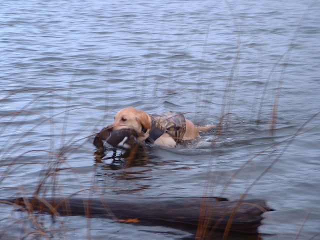 Posts: 1936 Location: Eau Claire, WI | Got out Saturday for about 3 hours, I had Ron from Hawgseekers out with me, he got a mid 30's and we saw a few more. Sunday morning I had a date with my favorite blonde, Mande. Nothing beats the dawning of a new day more than sitting in the blind enjoying a warm cup of coffee and the company of a Lab. See attached... Got home about 10, went to church, then came home and tried to go fishing yesterday afternoon, my wife needs one more fish to win the womens division of our chapter contest. Got the boat in the water, went to shift it into gear and nothing...WTF... try it again... nothing... hmm reverse works... sh## can't get it back into nuetral.... stuck in reverse, shut it off put it back on the trailer, go home and sit on the garden tractor for 3 hours mulching leaves... Today, I will hustle to find a shift cable, still have two guide dates yet this season. So that was me weeked.... Attachments ---------------- Mande 110605 retrieve 1a.JPG (127KB - 138 downloads) Mande 110605 retrieve 2a.JPG (144KB - 133 downloads) Mande 110605 in boat 1a.JPG (142KB - 128 downloads) | ||
