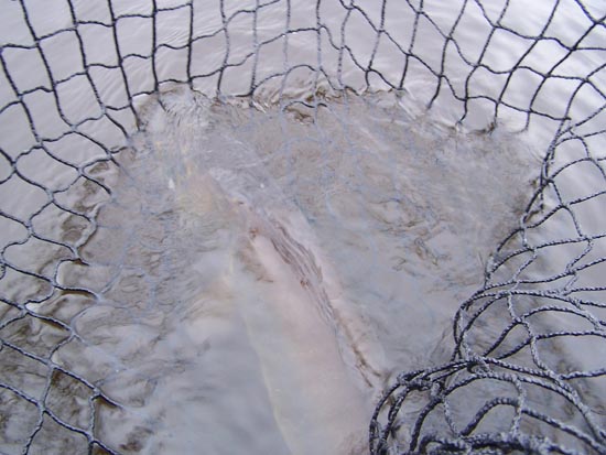 Location: Contrarian Island | Did a bit of lake hopping fri/sat/part of sunday in Iron Co...managed to boat 4, lost 2, one well over 40". Fish in the net were 32" Tiger, 35", 39" and this 41"er on a dawg at dark..first dawg fish for me at nite...fun stuff... All other fish came on meat... Edited by MSKY HNR 11/6/2005 7:44 PM | ||