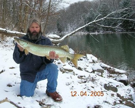 Posts: 194 Location: Southwest PA | I was able to get out for a little while this morning at one of the local creeks and was able to coerce this little beauty in to trying to eat a Bull Dawg. Attachments ---------------- 2005-12-04 Creek Muskie 640x480.JPG (82KB - 82 downloads) | ||