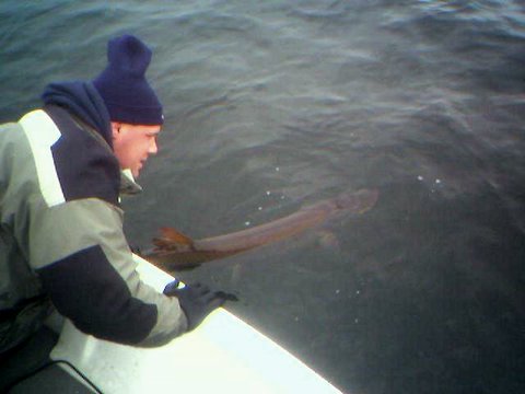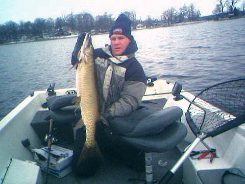 Location: Contrarian Island | Had a good time in Indi this weekend. Tom Hulbert, or as I like to call him now, Spicoli, hit Webster..the action was very good friday with 10 fish up, 6 hitting on 8's but only could get hooks into one, this 41", final ski of the year...Saturday was very slow but the beers flowed freely for us at Jimmys sat nite...talked ski's with Mike H, Rick and John B (MuskiHntr)...Sunday we only fished a couple hours...nothin.... gonna be lonnnng winter! Attachments ---------------- 41 wbstr 12-2-05.JPG (20KB - 88 downloads) | ||