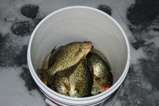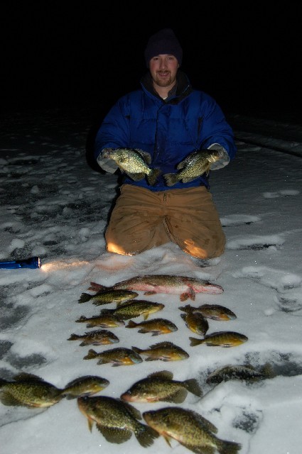 Location: Rhinelander, Wisconsin | And we had a GREAT day. Brian and Sarah, Keith, Cole, and I hit the ice mid morning, but the fish didn't go until near dusk. When they did, they REALLY did, though. I had a shovel head steal a crappie from me, that was cool.