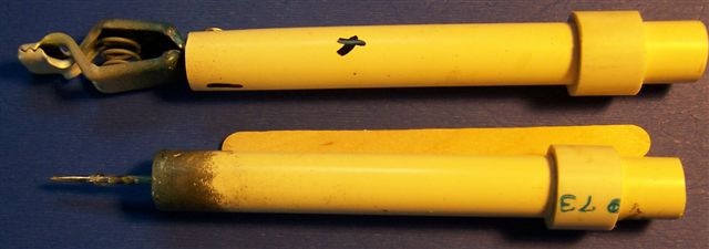 Posts: 235 | I cut a short piece of wood dowel. Break the edge on a belt sander or belt grinder and drive the dowel into the pvc pipe. Then drill a small pilot hole in the center of the dowel. Put a finishing nail in a drill and taper the nail head while the drill and the belt grinder are running. The tap the tapered nail into the dowel. This works great for me. I will show a picture of my holders. Thanks. and I hope this helps. Edited by Kenslures 3/2/2007 12:45 PM Attachments ---------------- Drying_Rack_Photo 1.jpg (62KB - 308 downloads) Lure_Holders_Photo 1.jpg (27KB - 241 downloads) | ||