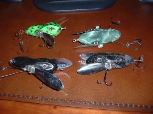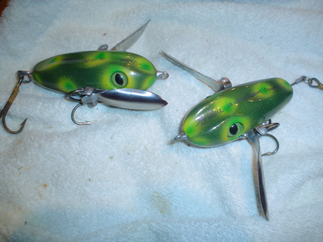 I, like Reefhawg, am a creeper fanatic. I have numerous different kinds. My favorite is Joel Wick's. Great fish catchers with the spreaders and most importantly great sound. Easy to tune as well. Here are a few of mine. Pretty beat up from use and these models shown here do nothing to show how fine his paint jobs are as well. I prefer boring black. Hope the picture comes out o.k.