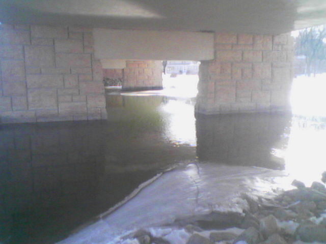 Well I was driving around Tonka today and noticed that under one of the bridges there was some open water. I have been wanting to throw some of the new Muskie Treats and other baits I got over x-mas so I went over there with some baits over lunch.