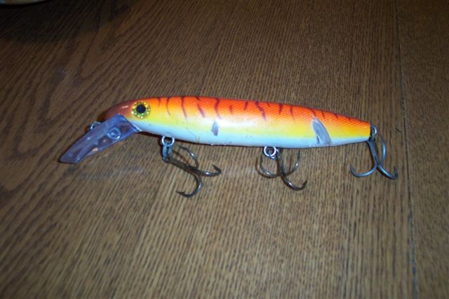 Posts: 209 | Looking for anyone that wants to part with straight Depth Raiders in a color called "Sunburst" or orange tiger. I think it was a custom color for R & H Musky shop in the late 1990's. They refered to it as Sunburst, but that pattern is more widely known as orange tiger. White belly, red/orange back, yellow/orange sides, tiger stripes..... Anyone have one just taking up space? Thanks, Jeff Sacco Edited by Trollindad 2/2/2006 7:38 AM Attachments ---------------- Sunburst DR.JPG (127KB - 95 downloads) | ||