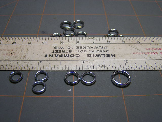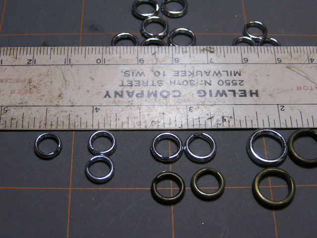 The third photo has the same ring layout as the first two but in also included a couple remaining bucher olive drab rings to show a size comparison as best I could. The diameter, wire gauge and # test are the same.