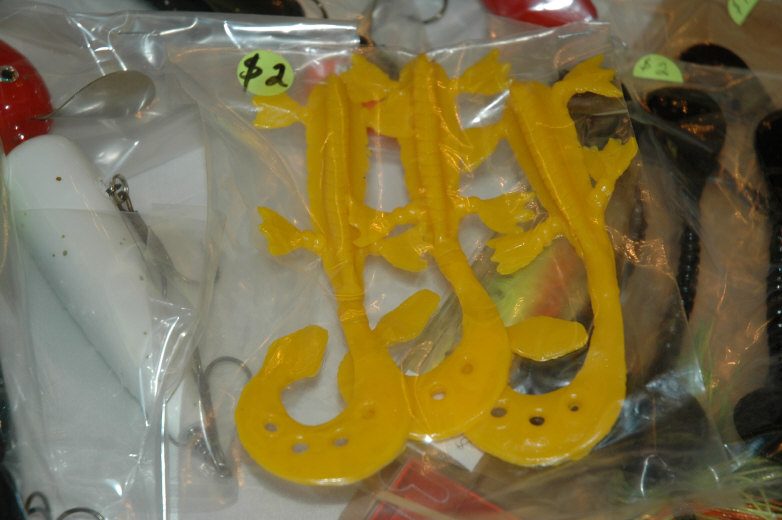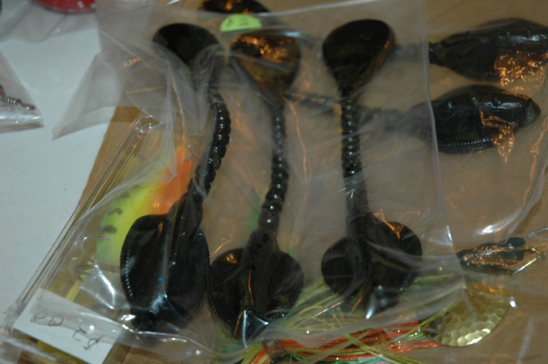 I pour paddle tails from 5.5 inch to 8.5inch. Fandango's, lizards with twister tail and flippinwaggler tails, and Bladed creatures W/skirts or W/out. Also do Multi-colored creatures Like a pearl body W/red tail...Skies the limit W/colors...Steve even took some pictures of them at the swap meet, you might be able to view yet...Also do Standup jig heads, and swimmer heads...Stand-up heads are similar to Jim Karens old jig-heads.