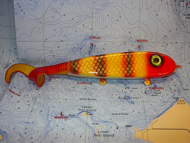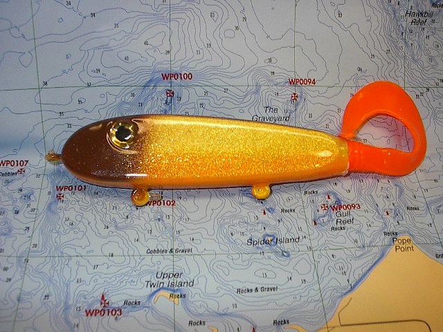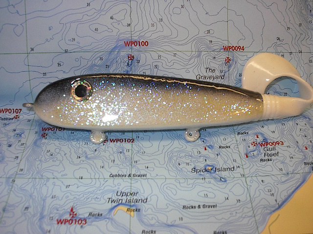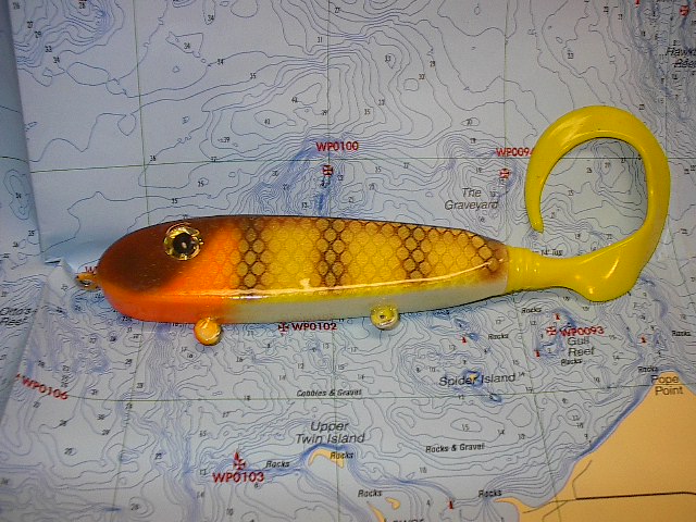 Posts: 43 Location: Kalamazoo | To anyone out there who has not had the pleasure of using ones of these lures you are missing out. They action is incredible and the finish will hold up for a lifetime. I have done well in Indiana with them and they can be worked different ways. Working the baits fast causes a short side to side action, slow it down and it takes HUGE side to side moves. They are some of the top baits I own and I can assure you'd be satisfied owning one. If not, let me know and I will buy it from you. From early spring right through late falls these lures produce. Try one out and they soon will be a favorite choice in your collection. | ||