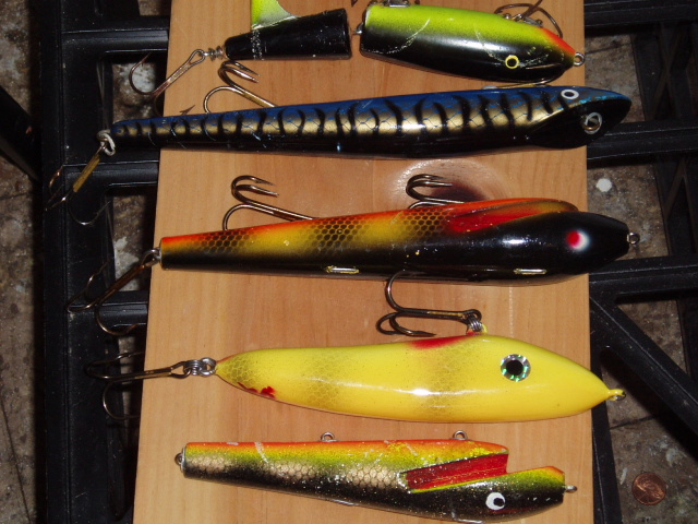 Here is a great starter kit...contains 17 lures...some new like the 10inch lunker twitch bait...a used but nice M-9 Grandma, and the original red head jake..mixed in with topwater, gliders, custom weighted reefhawgs, and bucktails...all housed in a nice plano 7915 box...Price 125.00 shipping included vis the USPS in the 48 states...Ben email at [email protected]