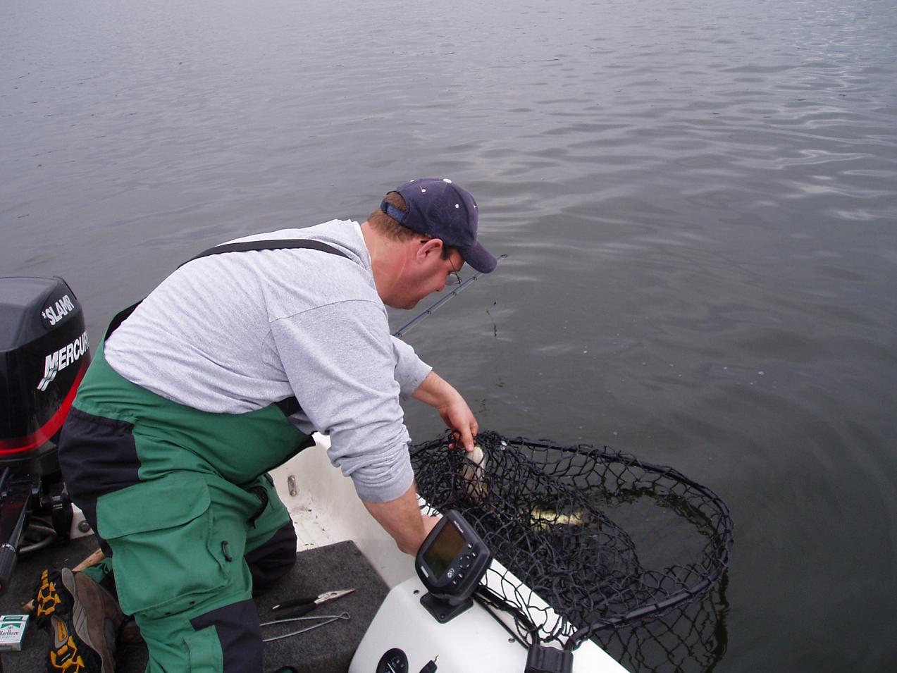 He just got rid of the small net, and I think that one was actually his new one. thedude 1 handed a 20 incher and still kept the boat trollin while he unhooked her that day. That was impressive!!!!!!!