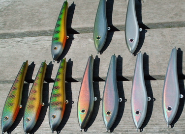 Posts: 4266 | I am not a patient guy, and it has been killing me trying to hold up my part of the whole "Chrome Thang" that Stan Durst and I have been working on together for the past months, just so you guys could fish with the very best available. You guys have seen what Stan was able to accomplish in a short amount of time. I've been impressed, I hope that you have been also. Well, with the creation of new Captains Quarters for me to play in, the first business at hand was to try the other end of the chrome project. We have been saying all along that this takes more time if you want to do it right, and if you want it to last. My part included the chromation of lighter and brighter colors, if that was possible. Well, I finally got to do the first 3 parts of the process in the last 10 days, and couldn't wait for a sunny day to lay my wares on the table. These lures are unfinished. They require another coat of magic elixer and a coat of Envirotex and 72 hours of drying before they would be ready for the water. I have one picture taken in bright sunlight, with the maximum effect visible that I will post. I will try to downsize another one enough so you can see what it looks like at about 3/4 of the maximum effect. The lures at the bottom of the photo have been chromified. The ones on the top are what the same lures would look like if I were to paint and sell them in the customary way......minus one coat of E-Tex though. Like we've said from the start, some guys will love it, some won't be impressed. But here is the beginning of phase 2, and what results you can expect. The perch are the brightest because they have the brightest colors, and were getting hammered directly by the sun. I'll try to get some pics where the reflectivity is toned down a little. I can't wait to experiment with different colors and different patterns. Right now it seems like we can get as crazy as we want to get. In answer to some of the e-mails that I've been getting, no it's not just something that we mix in the Envirotex and anybody can do it. And yes it takes a lot longer because of extra steps and extra curing time that can't be sped up. We'll try to make them as fast as we can, but we're not going to skip on quality. Right now, from the looks of the first test batches, I'll probably be doing 75% of my lures in some facet of chromification this year. So, the first picture is coming up, and I'll try to get more up as soon as I can.......I can paint, but I suck at making pictures do this justice. I also will start painting my pants off real soon, so you guys that I told to be patient....NOW is the time to request colors. I'll probably do them in batches of 10 at a time for each color. Thanks for your being patient, and for your interest. Beav Attachments ---------------- HPIM0073.JPG (81KB - 121 downloads) HPIM0068a.JPG (91KB - 117 downloads) HPIM0068b.JPG (94KB - 113 downloads) | ||