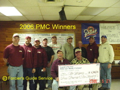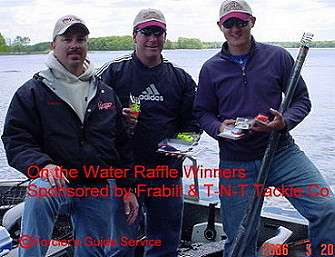 | here are the results from Todd's website: http://www.forciersguideservice.com DAY 1: 70 boats, 140 contestants started this morning in pursuit of some muskies. Fishing hours were from 7am to 4pm. Morning water temps were 57.4 degrees, warming to the low 60’s. Only two fish found the bottom of the net, a 41 ¼ and a 39 ½-incher. Both fish were caught in the river. DAY 2: Day two started with sunny skies and water temps around 59-degrees. Sixty 68 teams were looking for their first fish and two teams were looking to add to Saturday’s catch. Fishing hours were 7am to 12pm (noon). Conditions are tough, the cold fronts going through and the water level receding wasn’t making it easy to provoke these fish into biting. With 20 minutes left to go in the tournament two fish were caught with in 5 minutes of each other. First report was a 37-incher caught in Devils Elbow and a 43 ½-incher caught in the river. Three of the four fish were caught on glide baits, working them slow and the fourth fish was caught on a spinner bait. Several reports of fish hooked but lost. One of our lake judges was walleye fishing and commented...all his walleyes were barley hooked. Could this be related to the hook and lost muskies? ---------------------------------------------------- Back at the Chalet Restaurant for the awards ceremony we awarded four teams: 4th Place – Jim & Jiggs Kutschenreuter with a 37-inch musky, 42 points, $800. 3rd Place – Bryan Schaffer & Mike Bruggink with a 39 ½ - inch musky, 52 points, $1300. 2nd Place – Kip Kingsfield & Chad Boivin with a 41 ¼ -inch musky, 59 points, $2500, Saturday big fish 1st Place – Mike Lazers & Mike Young with a 43 ½ -inch musky, 68 points, $4500, Sunday big fish Since no other fish were caught 5th place money ($500) was decided by the contestants to be used for stocking. New for this year was the “On the water” raffle. Sponsoring this raffle was T-N-T Tackle Company and Frabill. This raffle was free to the contestants; we picked a number between 1 & 70. Each contestant was presented with: 1- TriKlops, 1- TriGlide and 1- Undertaker to from T-N-T Tackle Company and the team received a Lure retriever from Frabill. Our winning team was boat 69, Dave Reynolds & Eric Millard...congratulations to them and a big "thank you" to our friends at Frabill and T-N-T Tackle Company. We’d like to acknowledge all our major sponsors: Roberts Outdoors, Inc., Heckel’s Marina, Gander Mtn., Lowe Boats, Keyes Outdoors, St. Croix Rod, Stevens Point Brewery, The Chalet Restaurant and Goal Line Pub & Grill, Pepsi-Cola, Mailboxes & Parcel Dept, PCPOA, WRPCo, Econo Lodge, Quality Inn, AmericInn, Sleep Inn, Customfish.com and Musky 411.com. Also, a big thanks to the rest of our contributing sponsors. On behalf of Kevin, Rodger and myself we’d like to say “thank you” to all our sponsors and contestants for making this our 10th year a great success. Here are some of the photos from this past weekend. I’m waiting for some more pictures to come and I’ll post as soon as I get them. Todd Forcier http://www.forciersguideservice.com Attachments ---------------- Pete1stPlace.jpg (42KB - 141 downloads) Pete2ndPlace.jpg (44KB - 141 downloads) Pete3rdPlace.jpg (44KB - 134 downloads) PeteWaterRaffle.jpg (47KB - 141 downloads) PeteWinners.jpg (48KB - 129 downloads) | |||